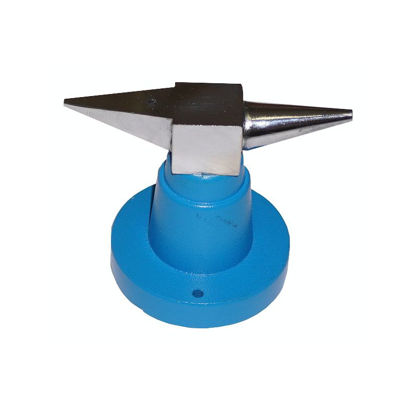 Yksi sarvi on tasainen ja toinen on pyöreä (muotoiluun). Alasimen päällä on reikä niittaukseen. Alasin on kone taottu ja ruuvattu valurautaiseen pohjaan.