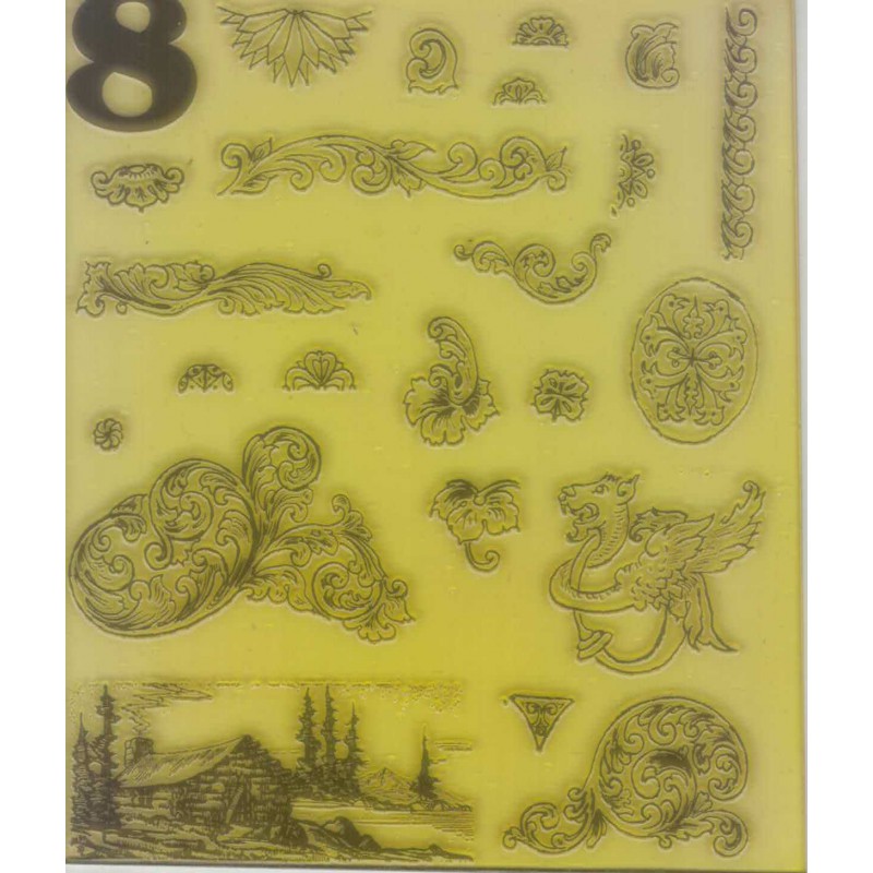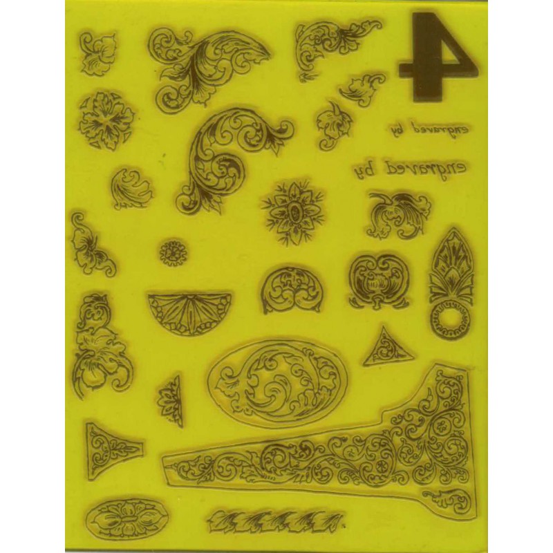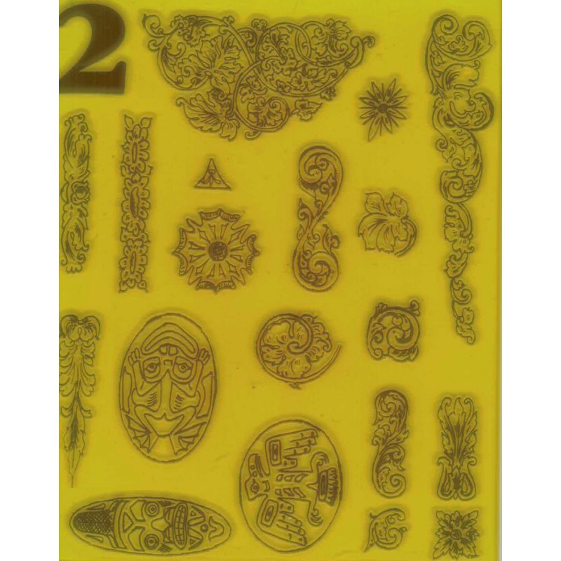 Tässä on nopea tapa aloittaa kaiverrus. Leimaa nämä kuviot suoraan työkappaleisiin ja seuraa viivoja. Kuviot ovat läpikuultavia ja joustavia, joten niitä on helppo käyttää myös kaarevilla pinnoilla. Ne ovat uudelleenkäytettäviä satoja kertoja.